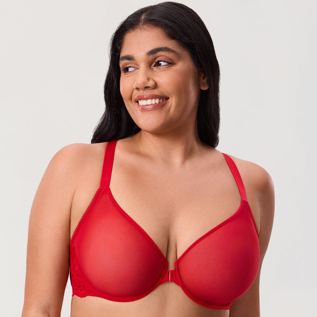 חזיית עצם שקופה בסגירה קידמית משגעת בתמיכת תחרה אחורית ללוק נשי חתיכי