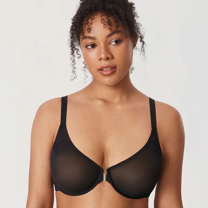 חזיית עצם שקופה בסגירה קידמית משגעת בתמיכת תחרה אחורית ללוק נשי חתיכי