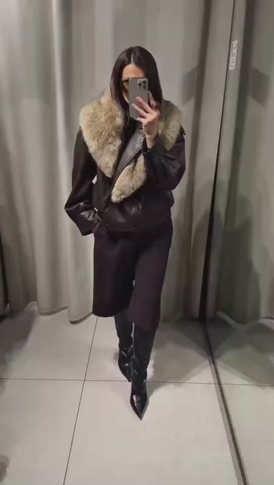 מעיל עור יוקרתי בגזרת אוברסייז ובגימור פרוותי משגע ללוק מהמם שלך