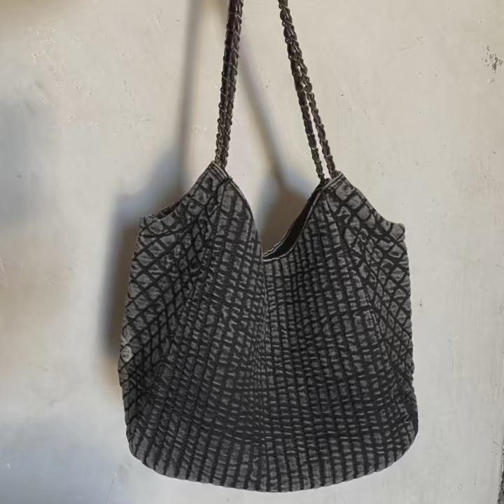 תיק כותנה של מעצב צרפתי בגימור שרשראות כסף להופעה פרקטית ממגנטת